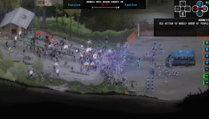 Pemain dapat menempatkan unit di titik-titik strategis, memerintahkan mereka untuk menyerang, bertahan, atau mundur. Bagi pihak kepolisian, strategi meliputi penggunaan gas air mata, tameng, atau peluru karet. Sementara demonstran bisa menggunakan spanduk, molotov, atau megafon untuk memengaruhi moral massa. - Emosi dan Moral